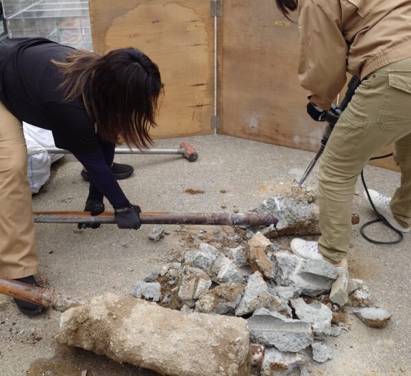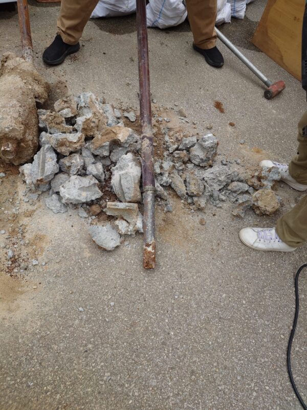 先日、看板設置で撤去してきた支柱に、コンクリート基礎が残っていた為、初めてはつりをしました。